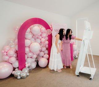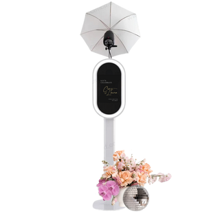 A sleek photobooth, perfect for celebrations requiring an aesthetic & compact design